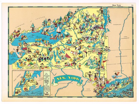 Original Scarce Vintage Ruth Taylor Map Cartoon Pictorial 1935 New
