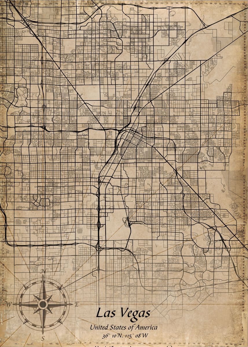 las vegas vintage map’ Poster, picture, metal print, paint by