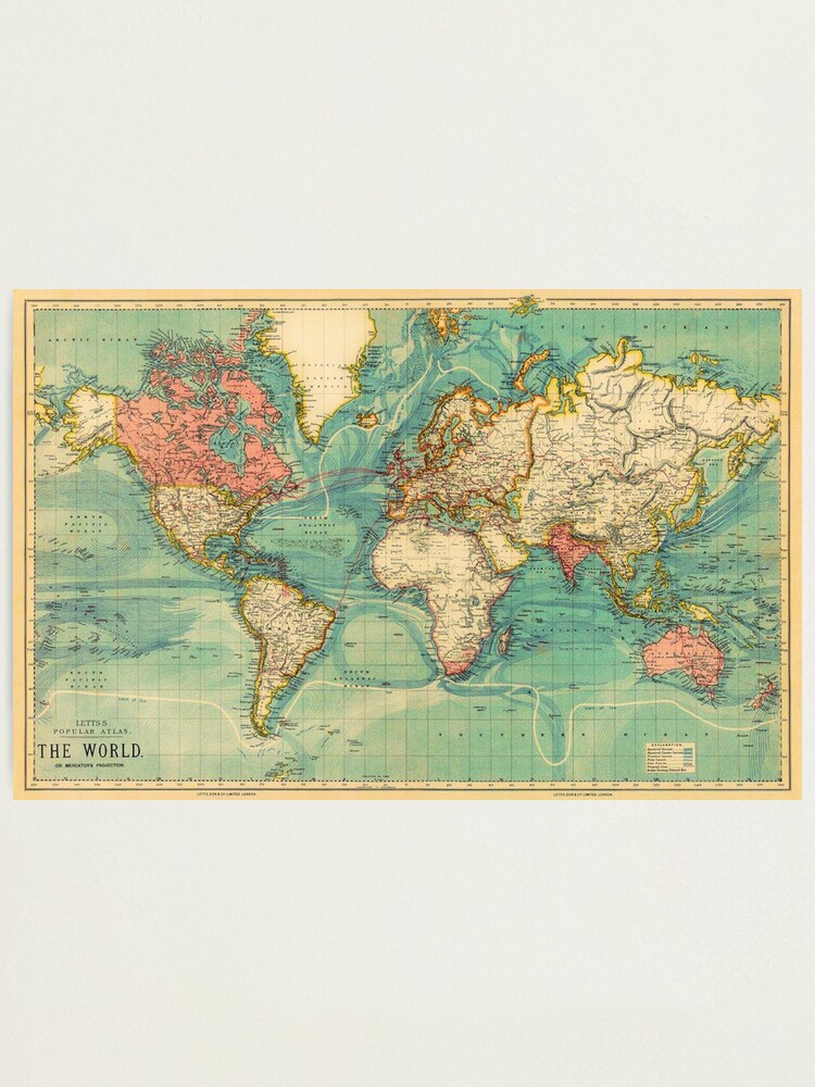 Vintage Map of The World 1883″ Photographic Print for Sale by