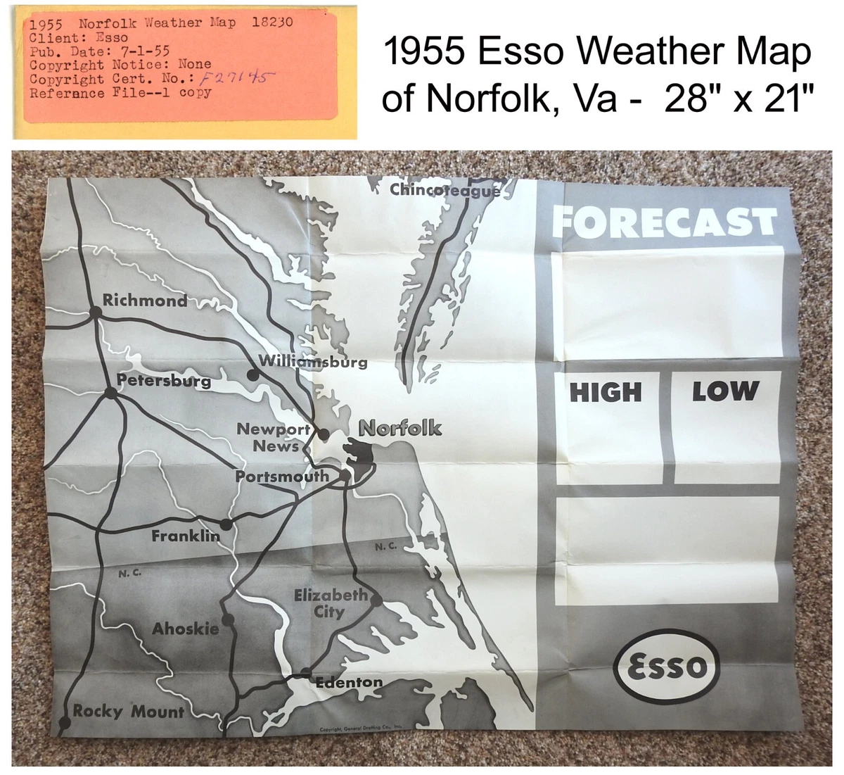 Vintage 1955 Norfolk, Virginia Weather Map Esso | eBay